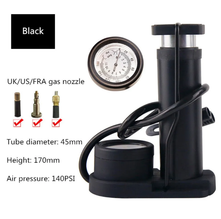 Inflador de Pie Portátil con Manómetro 140 PSI – Para Auto, Moto y Bicicleta