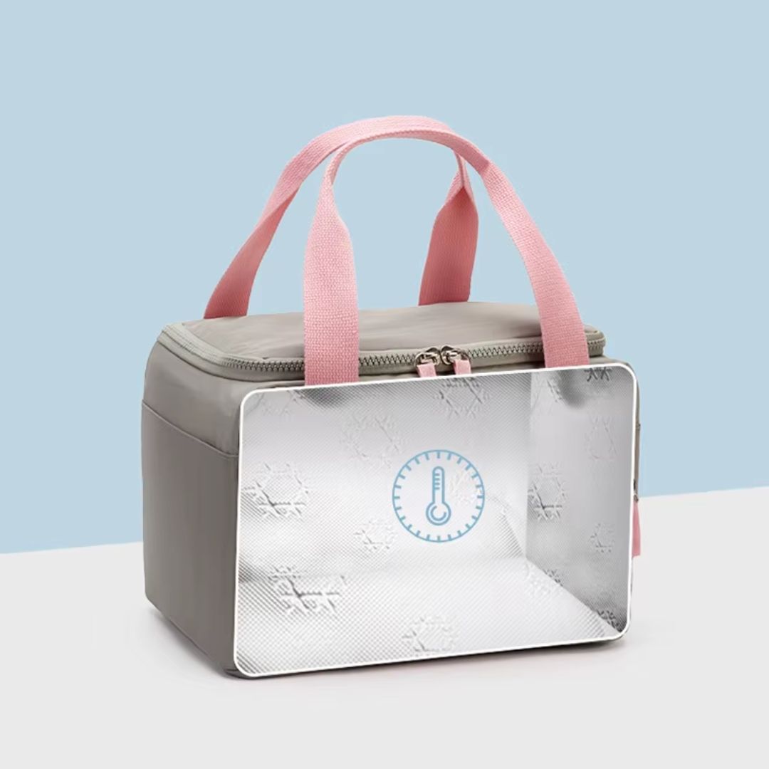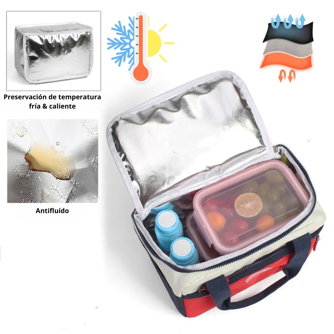 Su interior con revestimiento de aluminio térmico ayuda a conservar la temperatura, mientras su diseño compacto y resistente facilita el transporte.